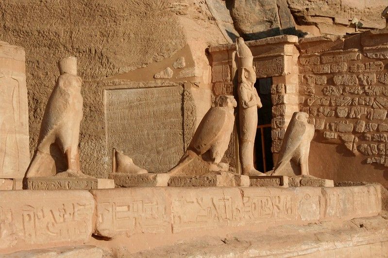 Construidos por el faraón Ramsés II, los monumentos se excavaron en la propia roca estando dedicados uno al propio faraón y otro a su esposa Nefertari. Ambos templos se consagraron a los cuatro dioses universales egipcios.