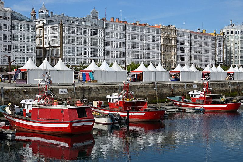Dejaremos atrás la ciudad vieja para recorrer La Marina, el famoso conjunto casas y de galerías acristaladas frente al Real Club Náutico, hechos de madera y pintados de blanco, hacen que La Coruña reciba el nombre de «la ciudad de cristal» y «balcón del Atlántico».